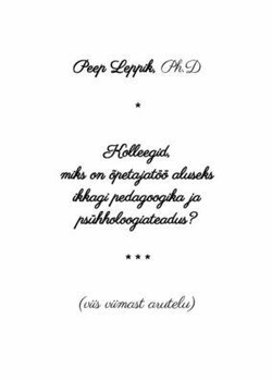 Kolleegid, miks on õpetajatöö aluseks ikkagi pedagoogika ja psühholoogiateadus?